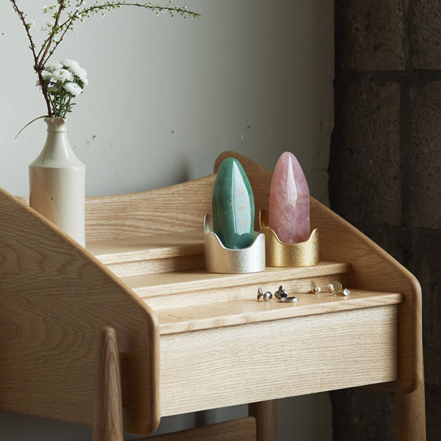 美しさや普遍性・耐久性を兼ね備え、故人の魂を受け入れるにふさわしい天然石を採用しました。ピンククォーツ、消水晶、紫金石、アベンの4種類の石で、あの人を感じる「世界にひとつだけ」のかたちを、やさしく作りました。