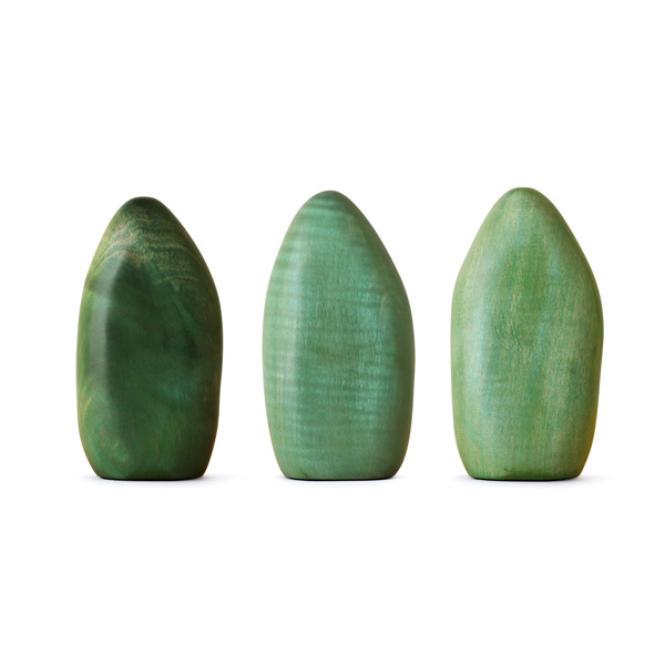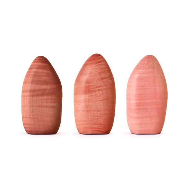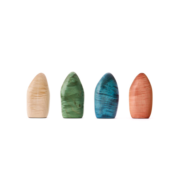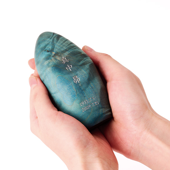 トチノキを手のひらサイズに削り出し、特殊な染色を施して仕上げました。染め上げるまでわからない自然の模様は、ときに想像もしないような美しい木目を浮かび上がらせます。それは人の手の及ばない、大地がくれた奇跡。個体によって木目の出方が異なるため、あの人らしい唯一無二の表情を見つけてください。