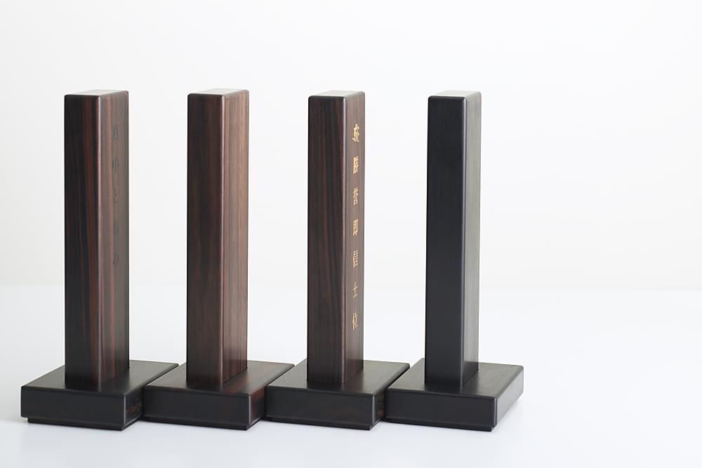 位牌は魂を籠める為にあります。故に魂に相応しい尊厳を備えていなければいけません。虎空檀は選び抜かれた無垢の黒檀から、一つ一つ職人の手で削り出され磨き上げられています。黒檀は水に沈む程に重く、時と共に重厚さが加わり尊厳を増します。塗装では決してえることのない奥行きが漂っています。