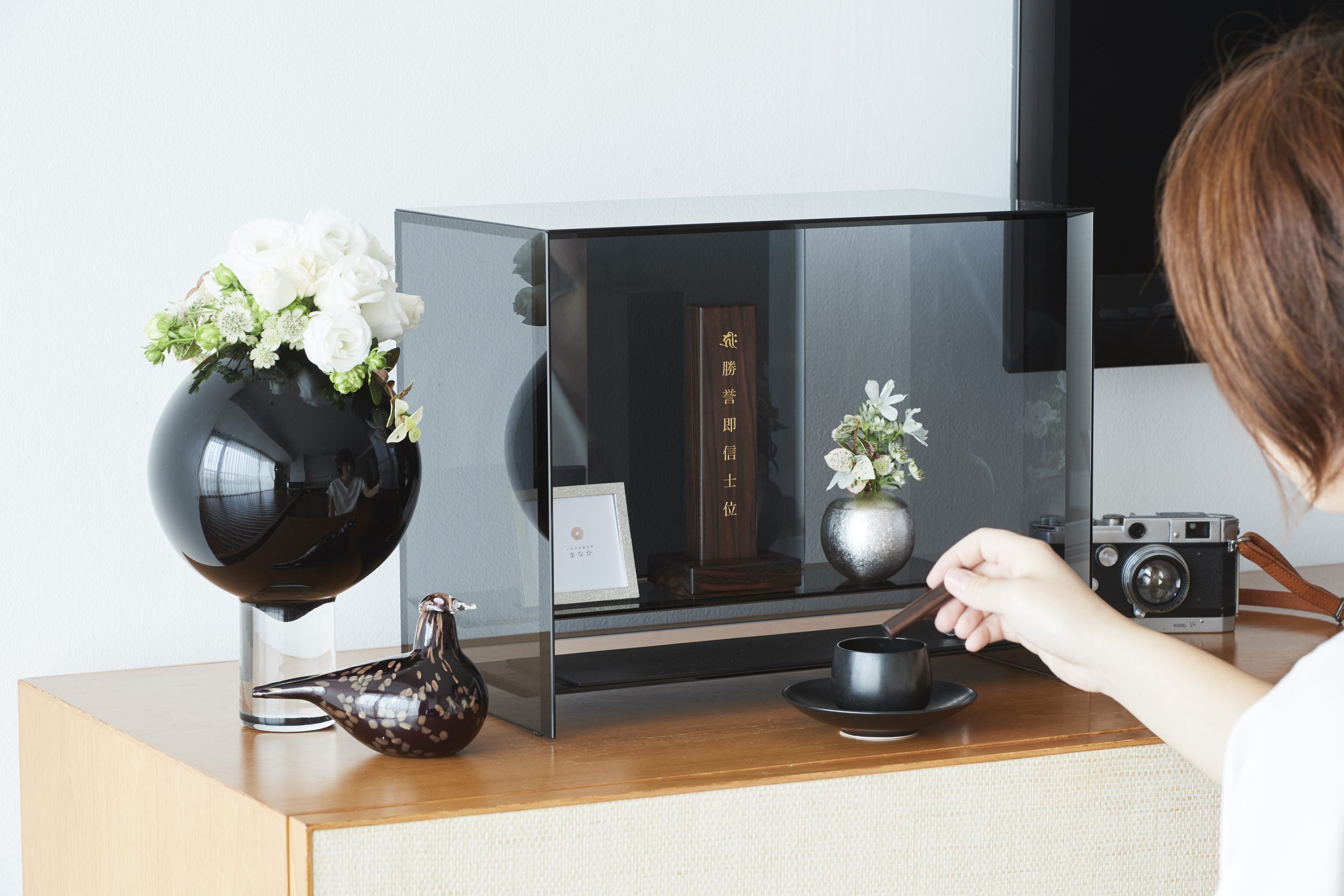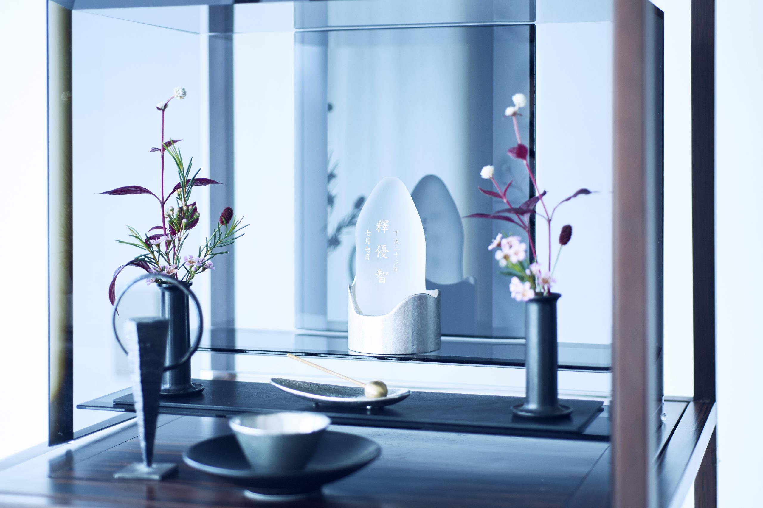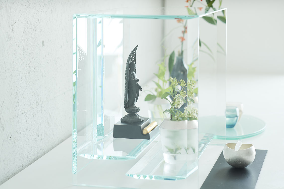 多様な偲びの心を受け入れる「無垢な場所」として、全面に硝子を用いて作られたお仏壇『澄壇』。