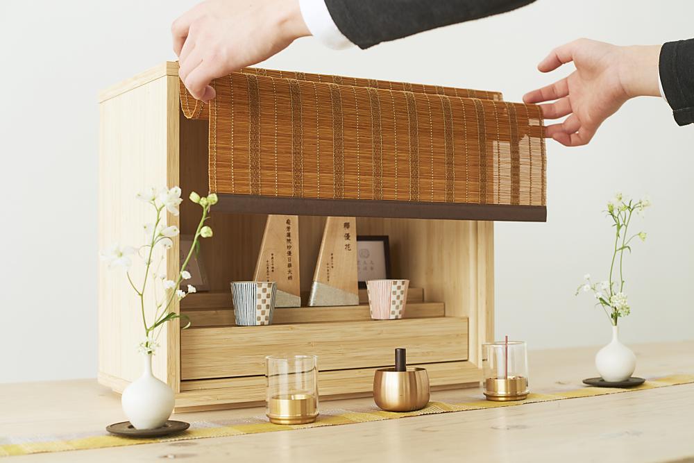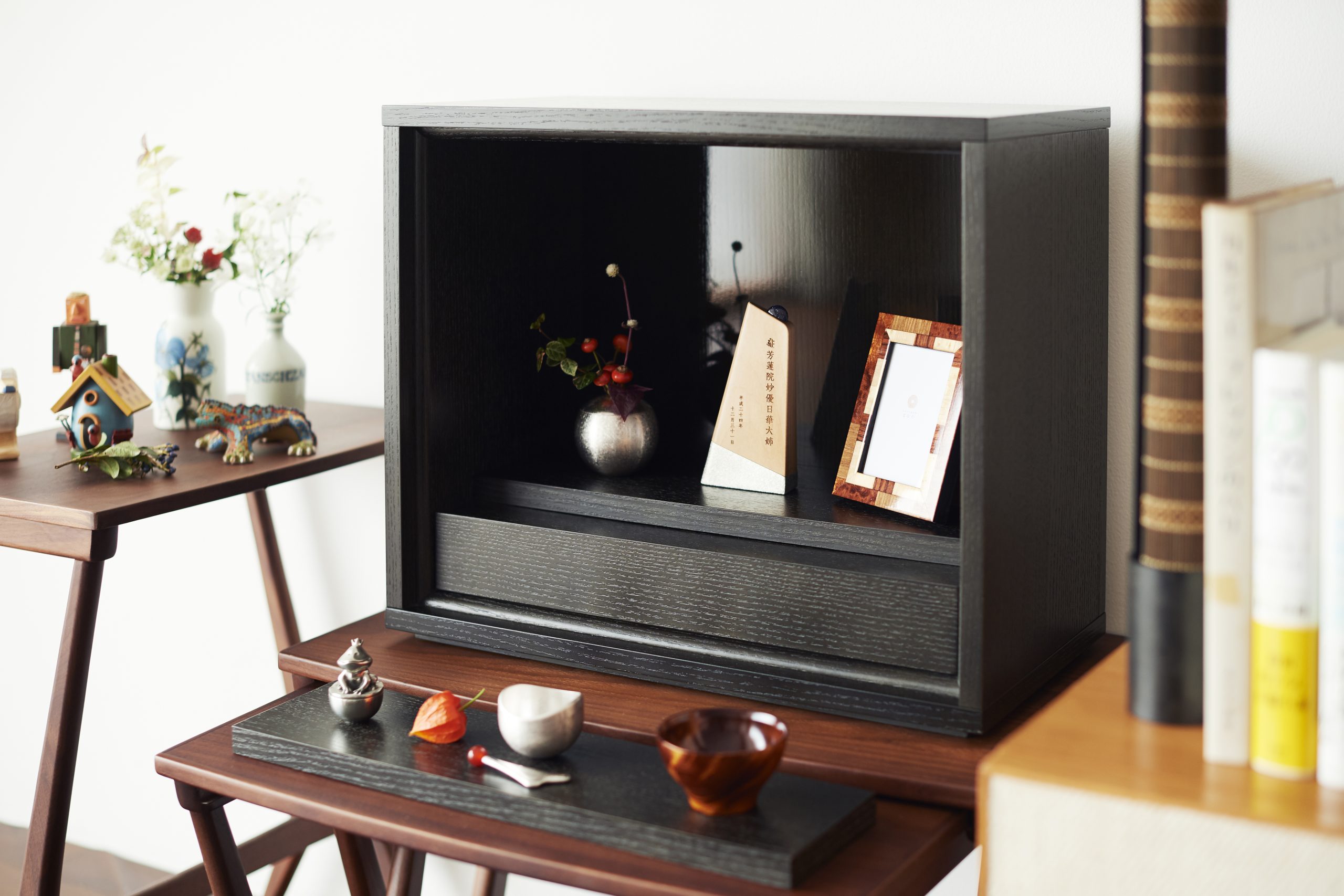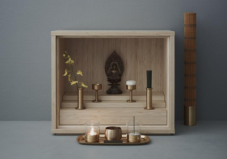 従来の仏壇は、特に都心部に暮らす人たちには、大きすぎるものでした。そこでまず、現代の住居に合わせたサイズを一から検討し、素材や仕上げも、よく吟味しました。シンプルでありながら、必要な機能もきちんと満たすことにもこだわりました。伝統的でありながら、従来品にはない革新的な工夫が随所に凝らされています。